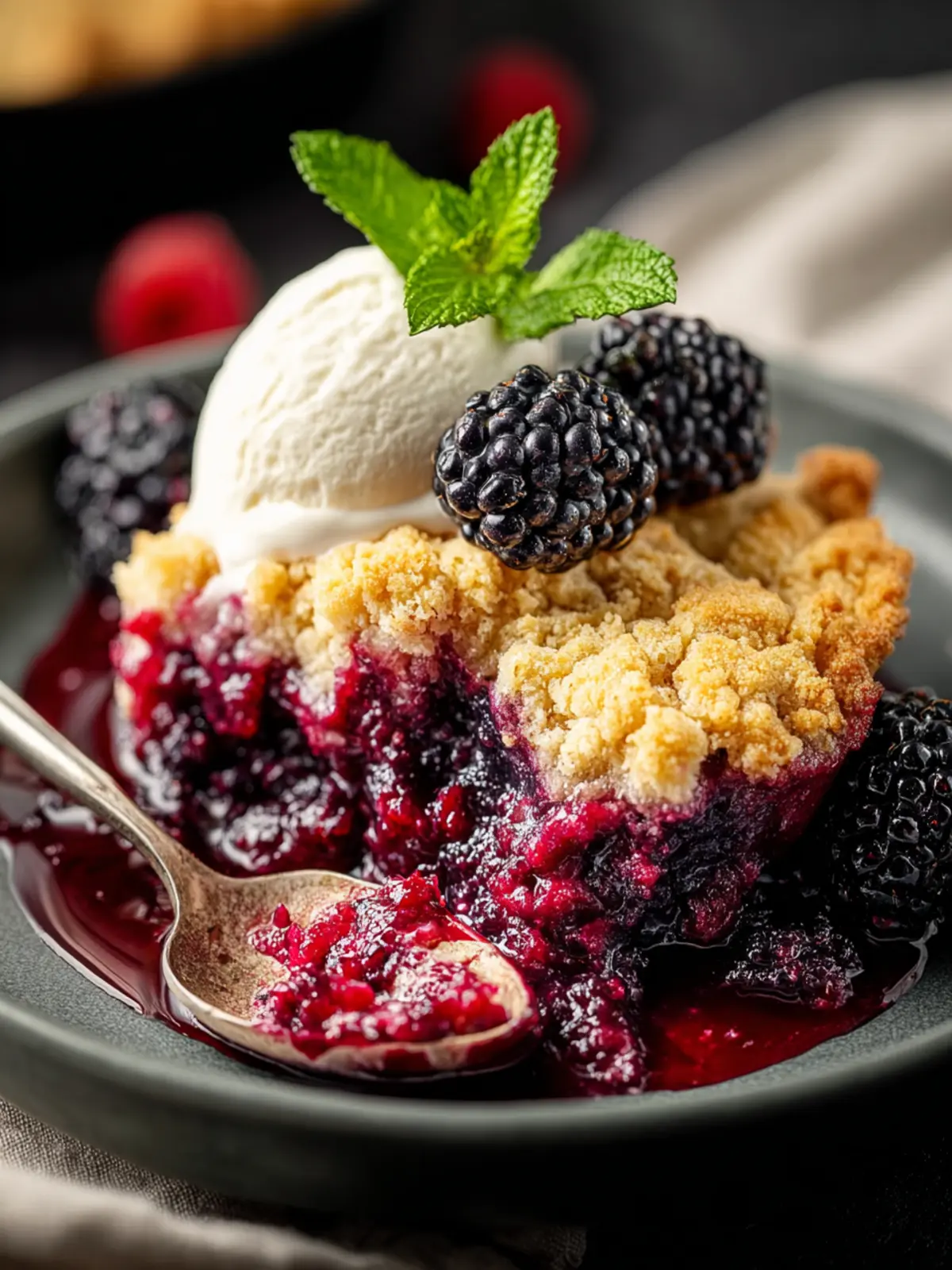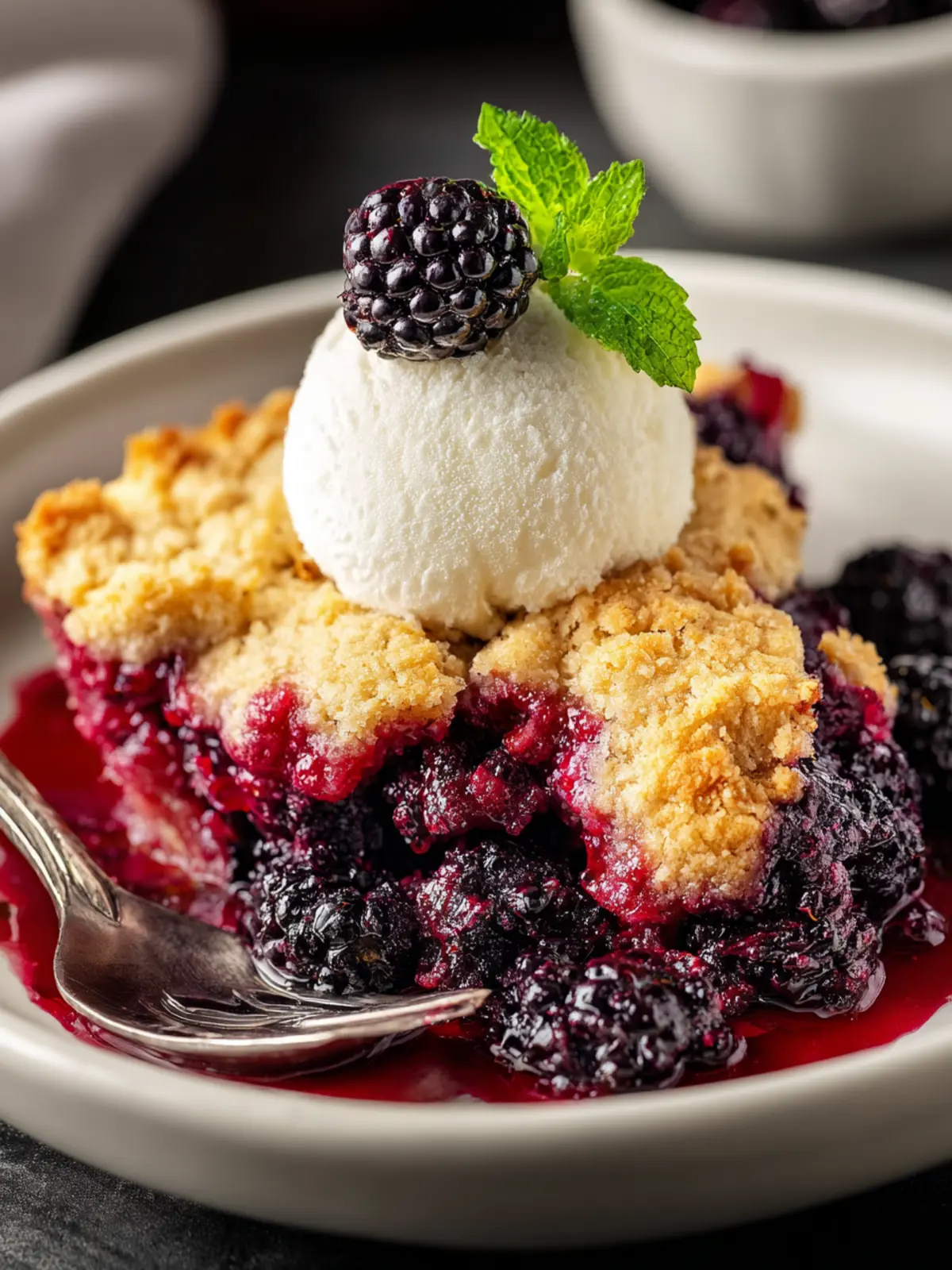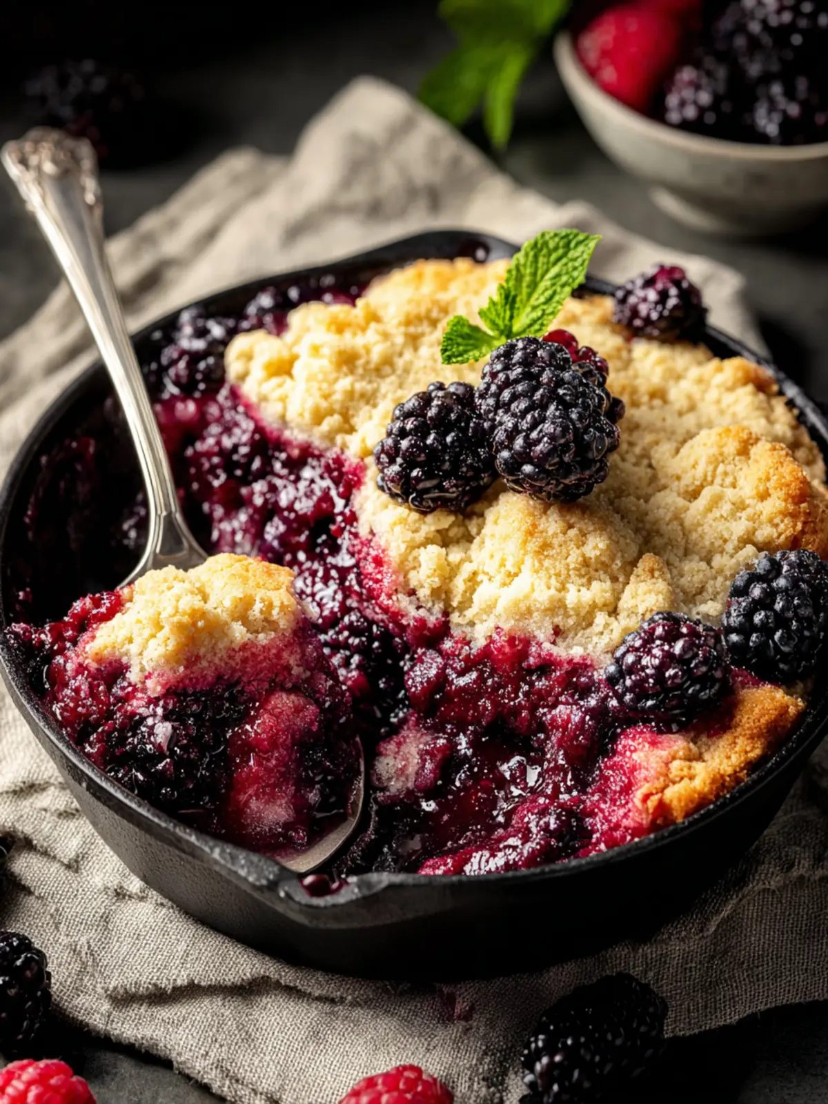 A delicious blackberry cobbler made with fresh blackberries, perfect for dessert!