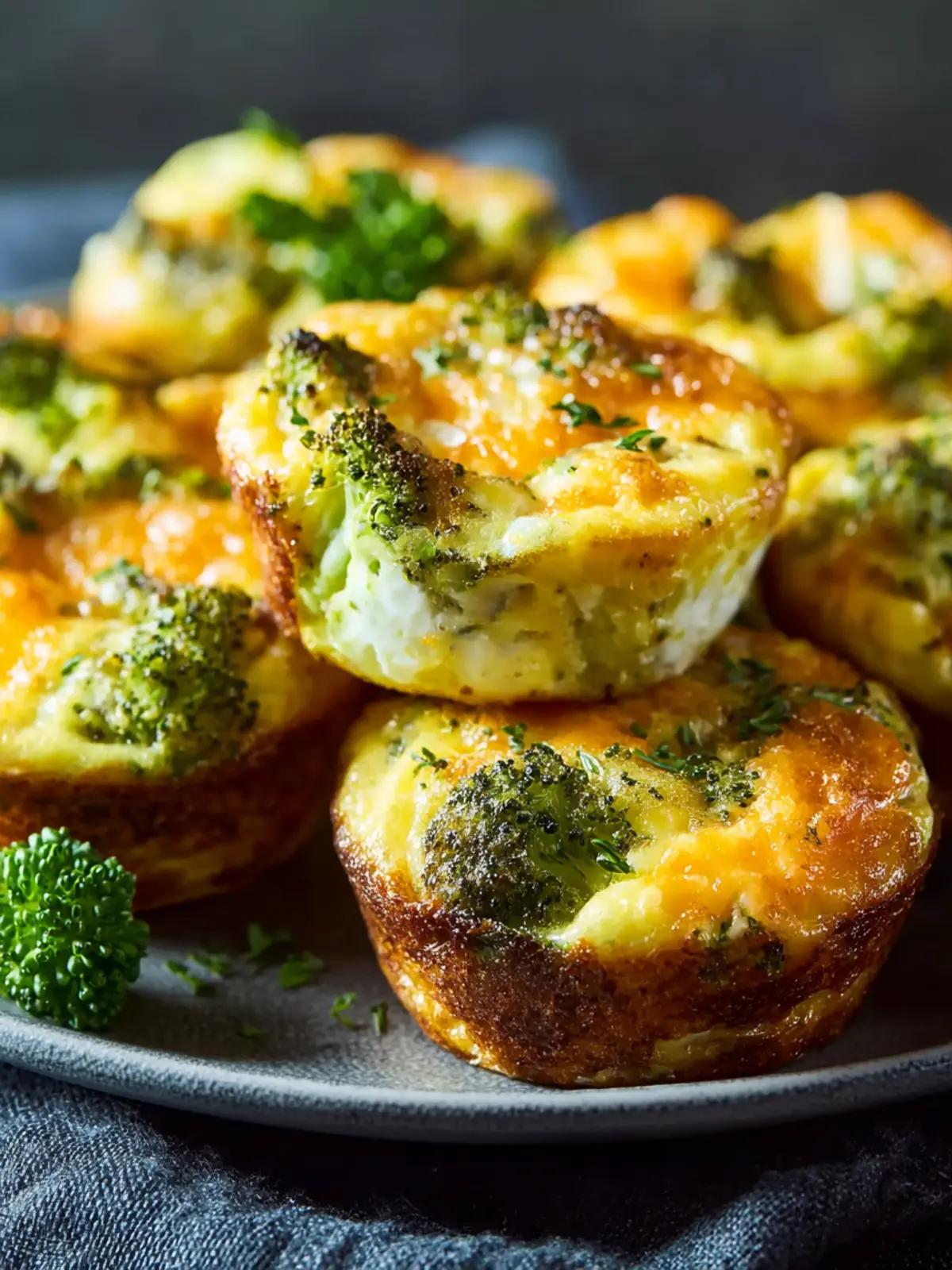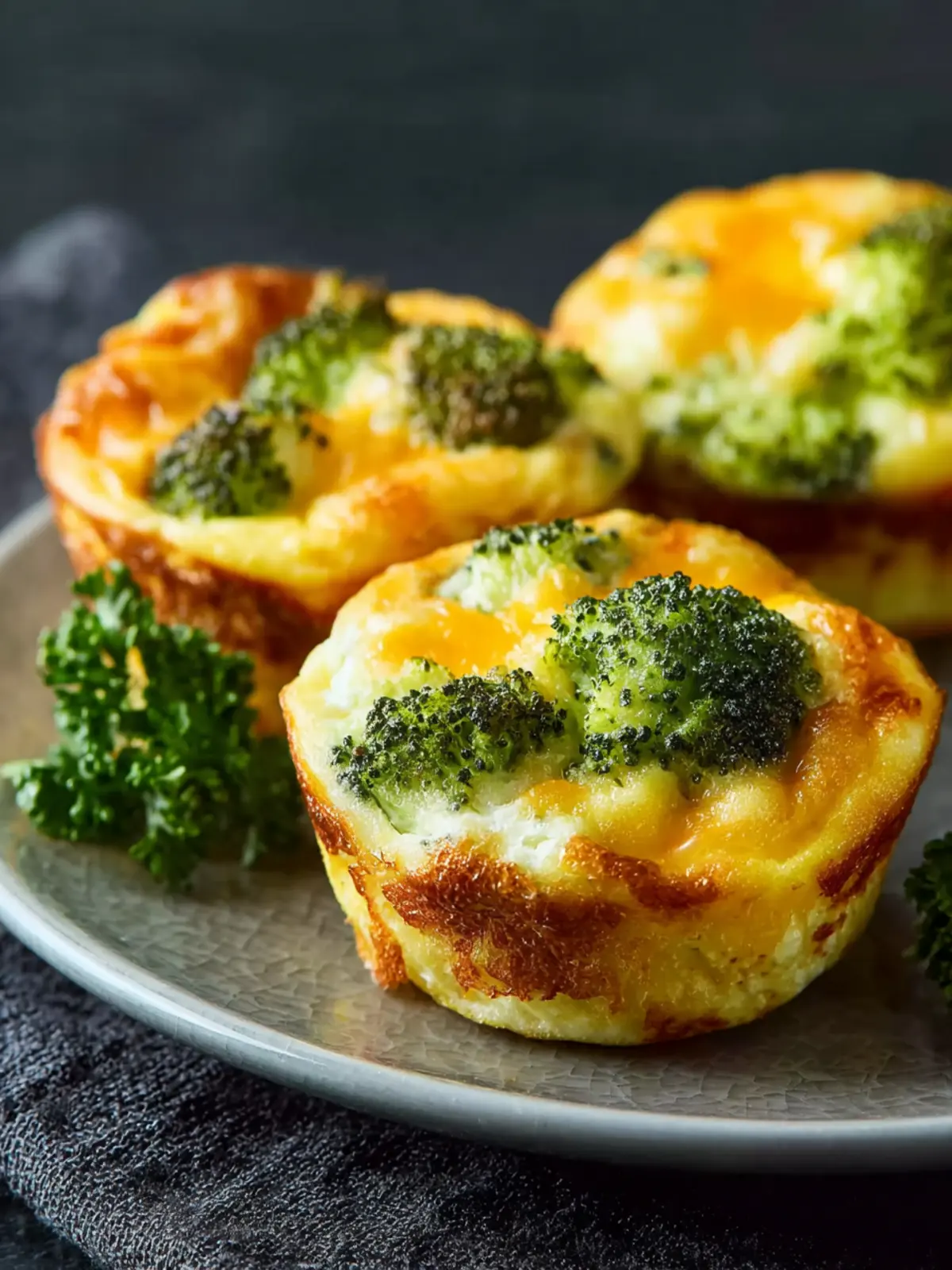 Delicious and healthy egg bites packed with broccoli and cheese, perfect for breakfast or a snack.