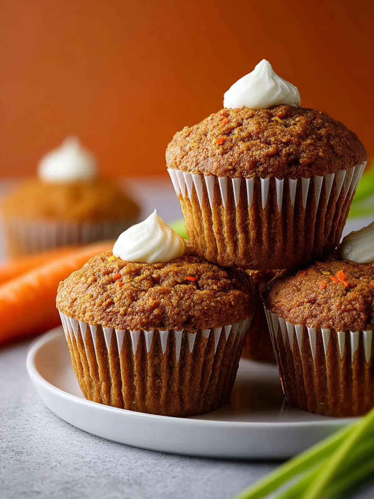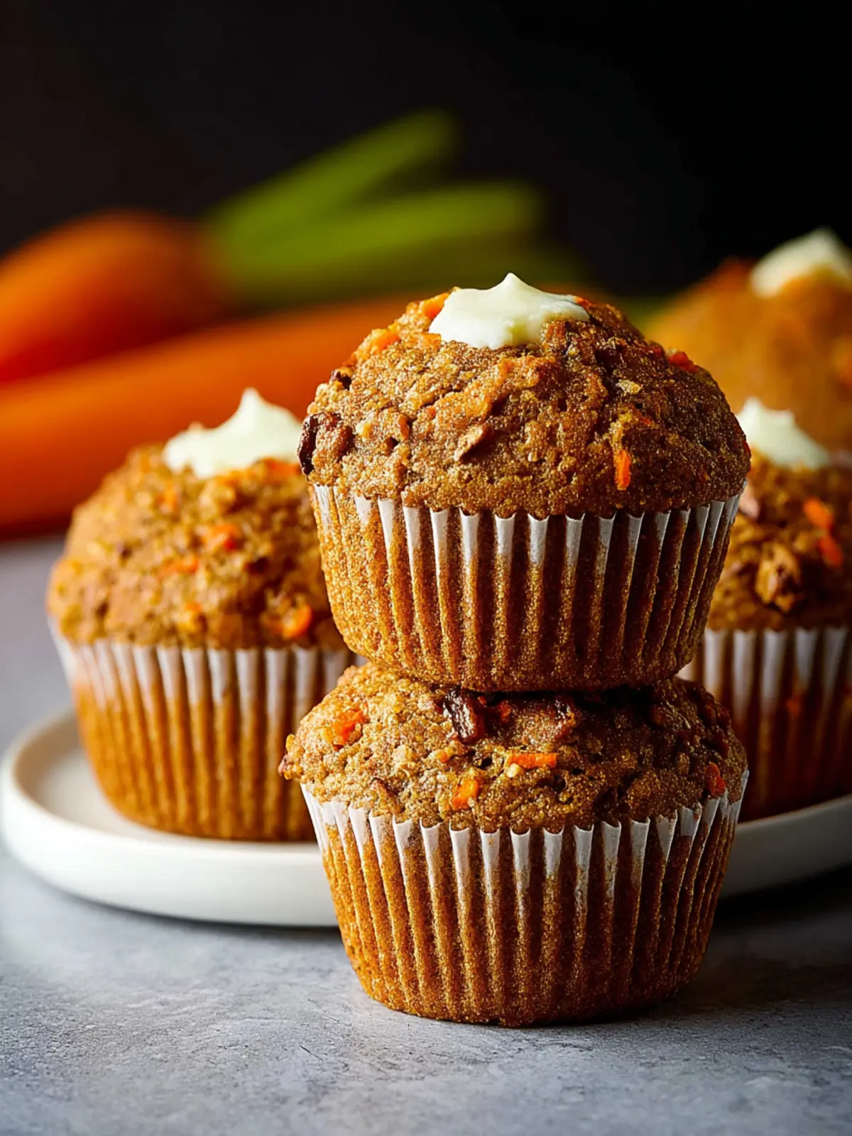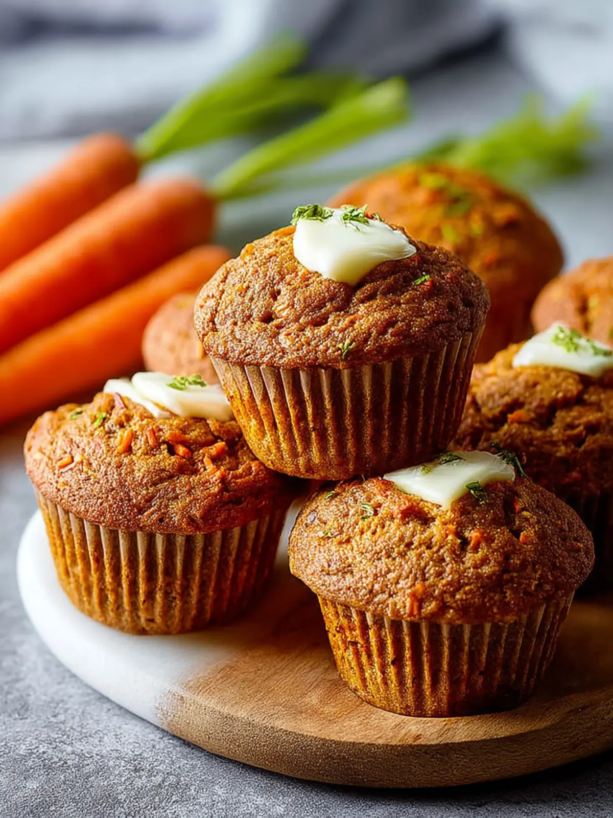 Delicious and moist carrot muffins, perfect for breakfast or a snack.