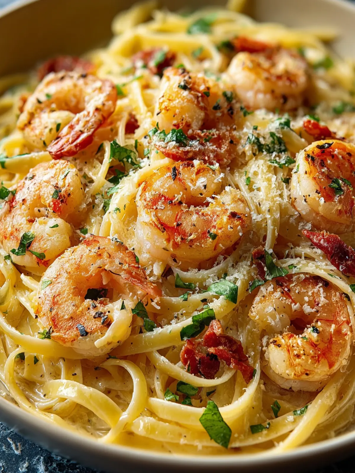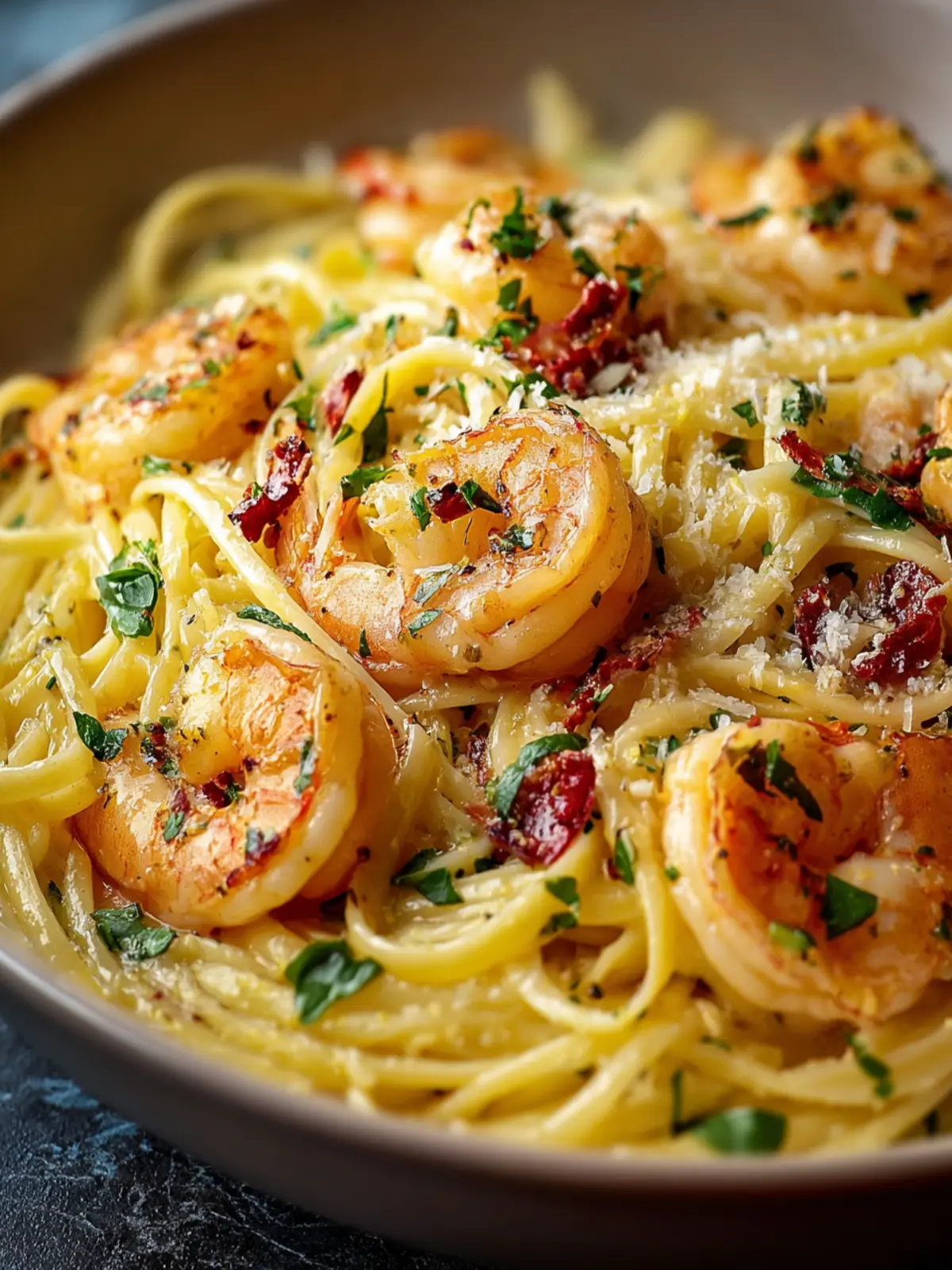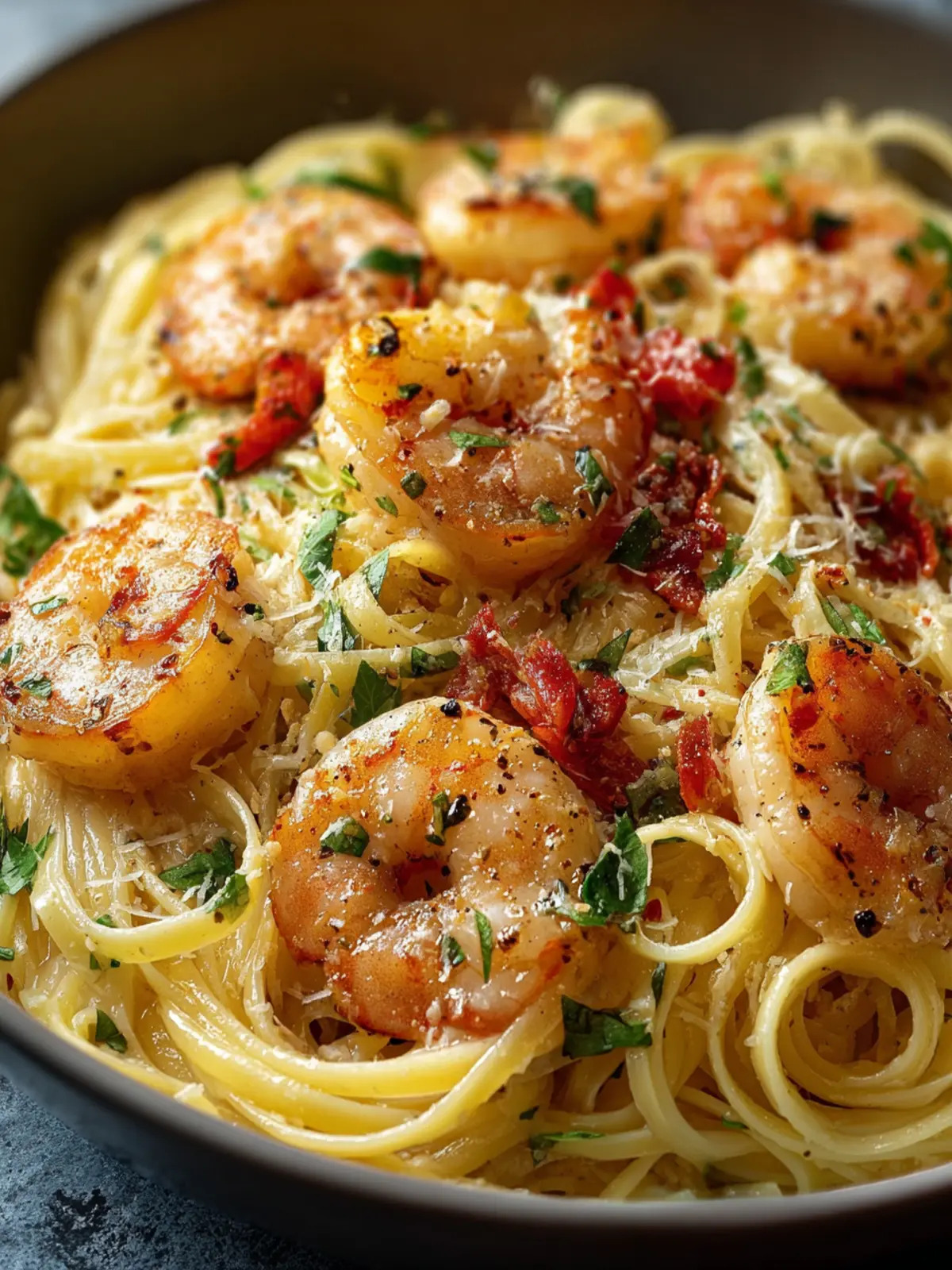 The essence of this dish lies in the pasta shape. I prefer using linguine or fettuccine because they effortlessly hold the luscious cream sauce and complement the succulent shrimp. Choose the one you love best!