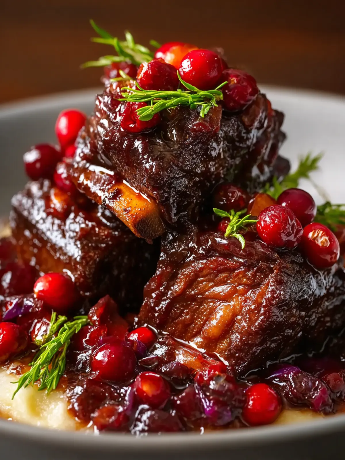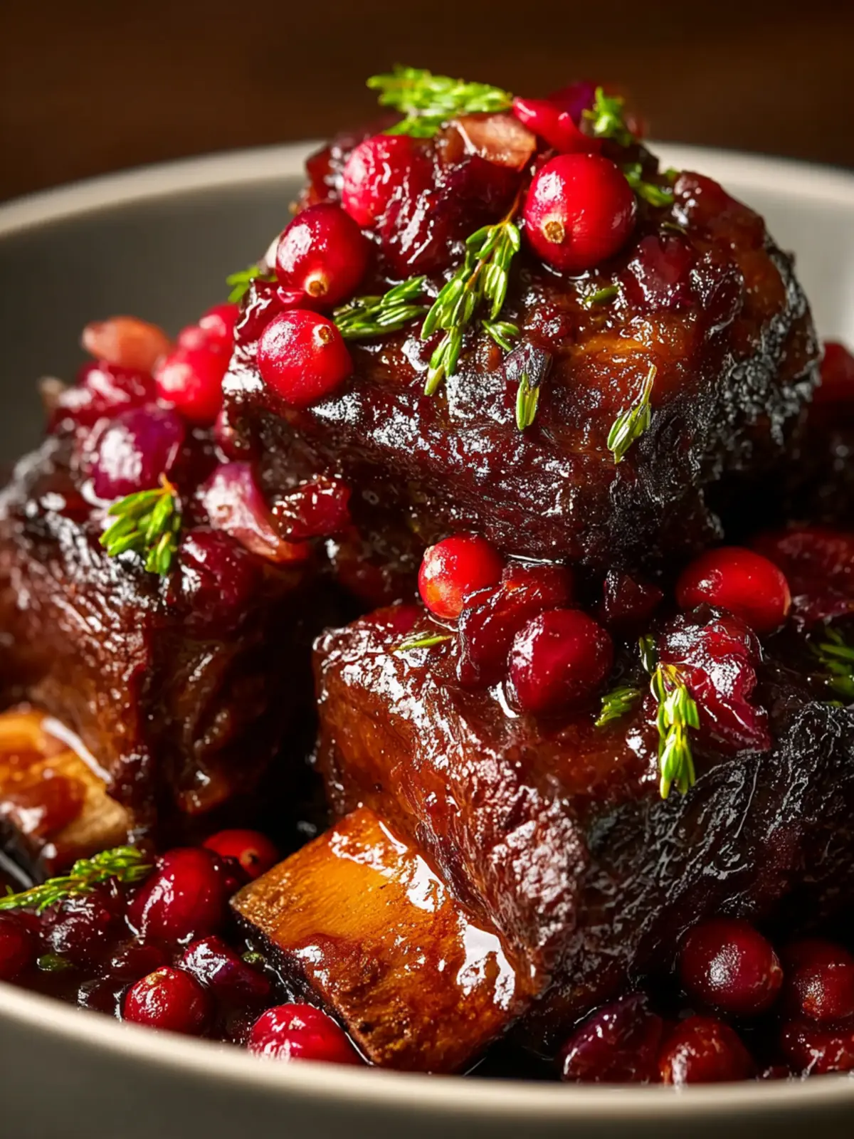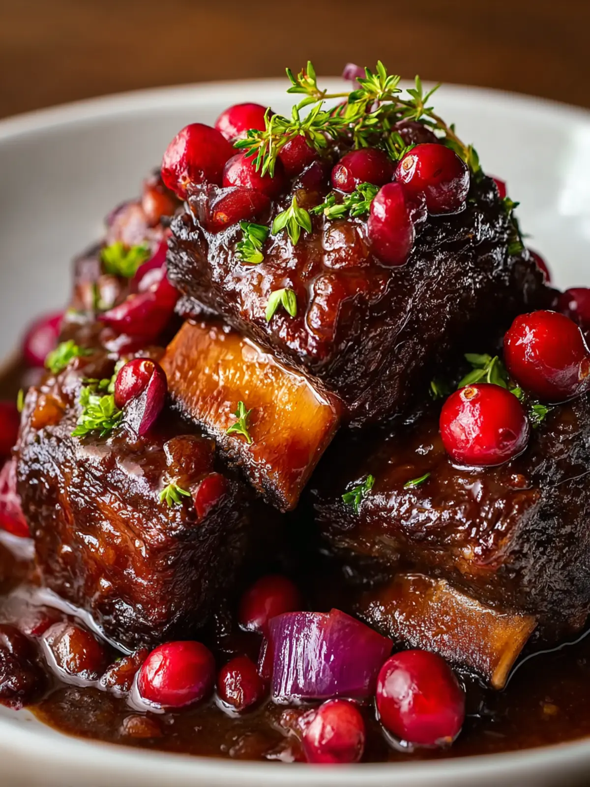 Deliciously tender beef short ribs simmered in a rich cranberry sauce.