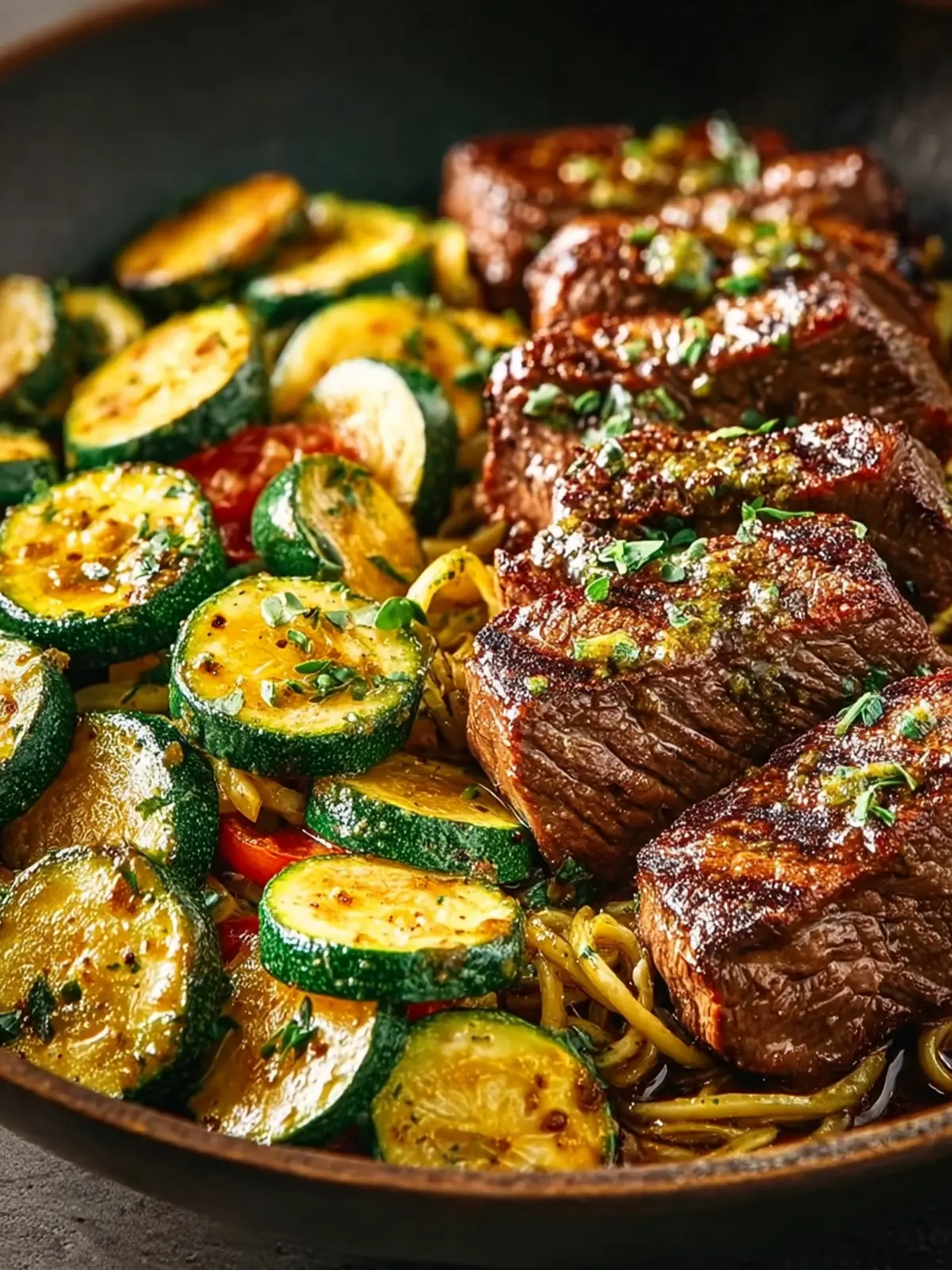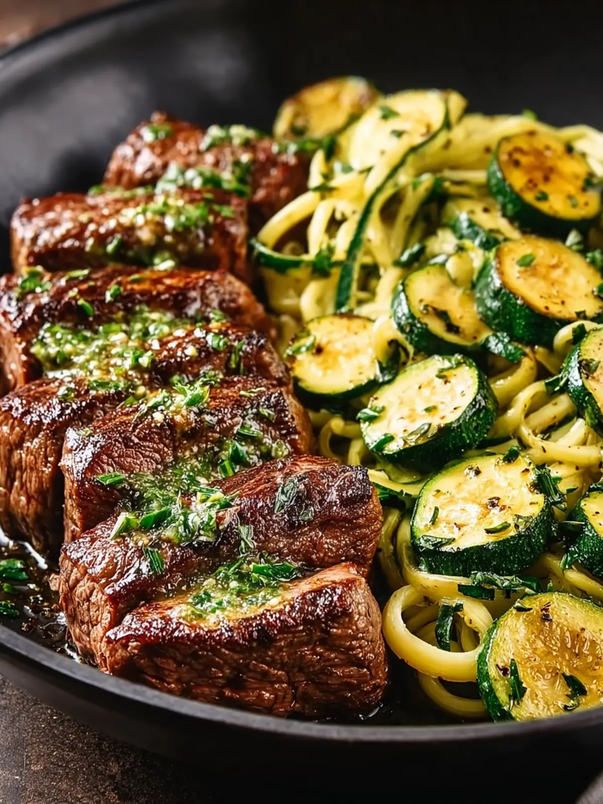 • Layering: Start with a base of sautéed zucchini, lay your perfectly seared steak on top, and finish with a sprinkle of fresh parsley or microgreens.