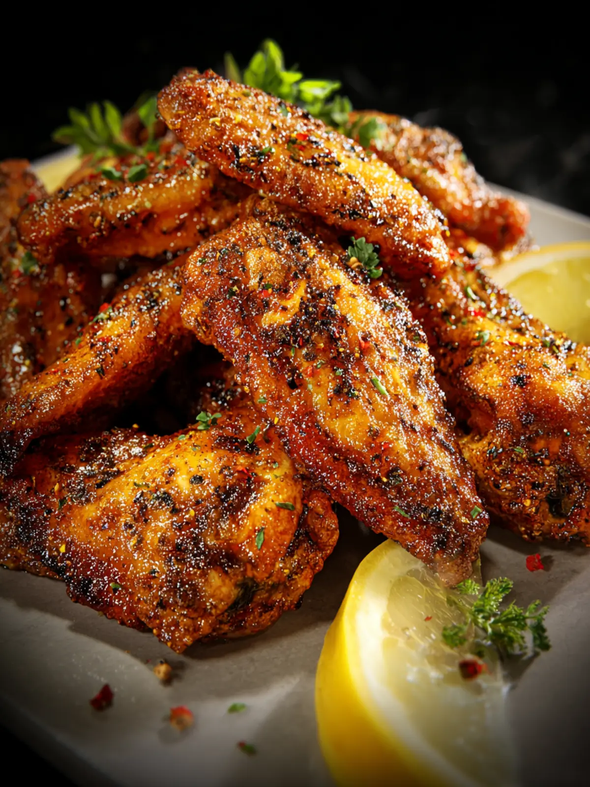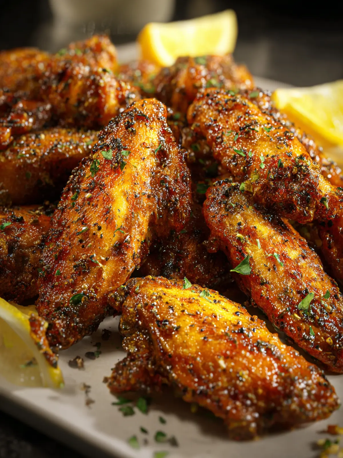 Delicious lemon pepper chicken wings that are crispy and flavorful.
