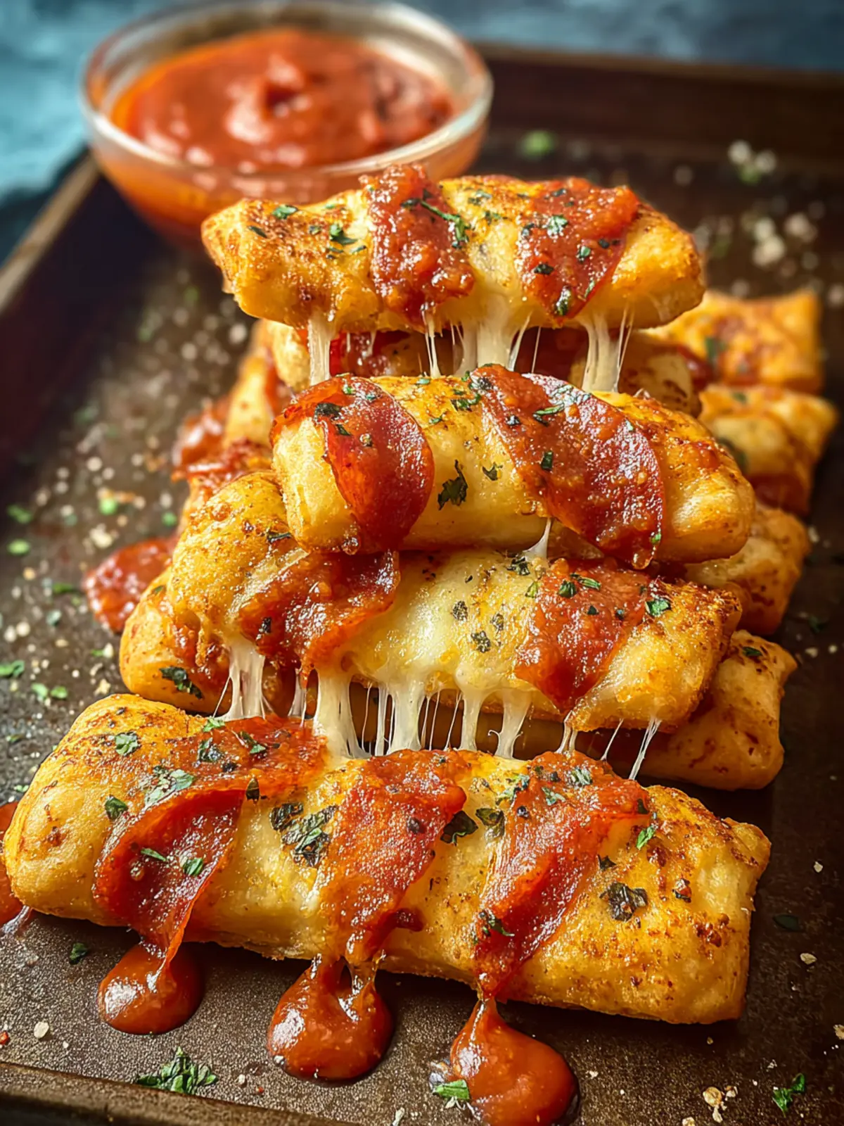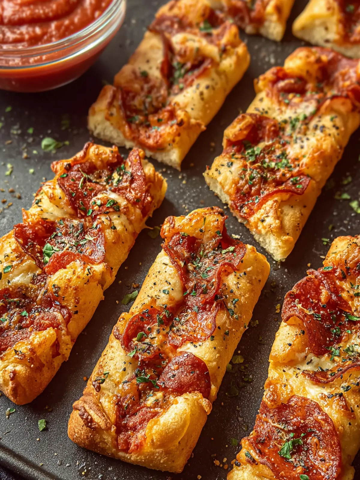 Delicious cheesy pizza sticks, perfect for a snack or appetizer!