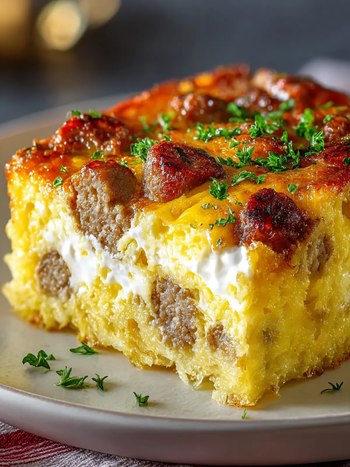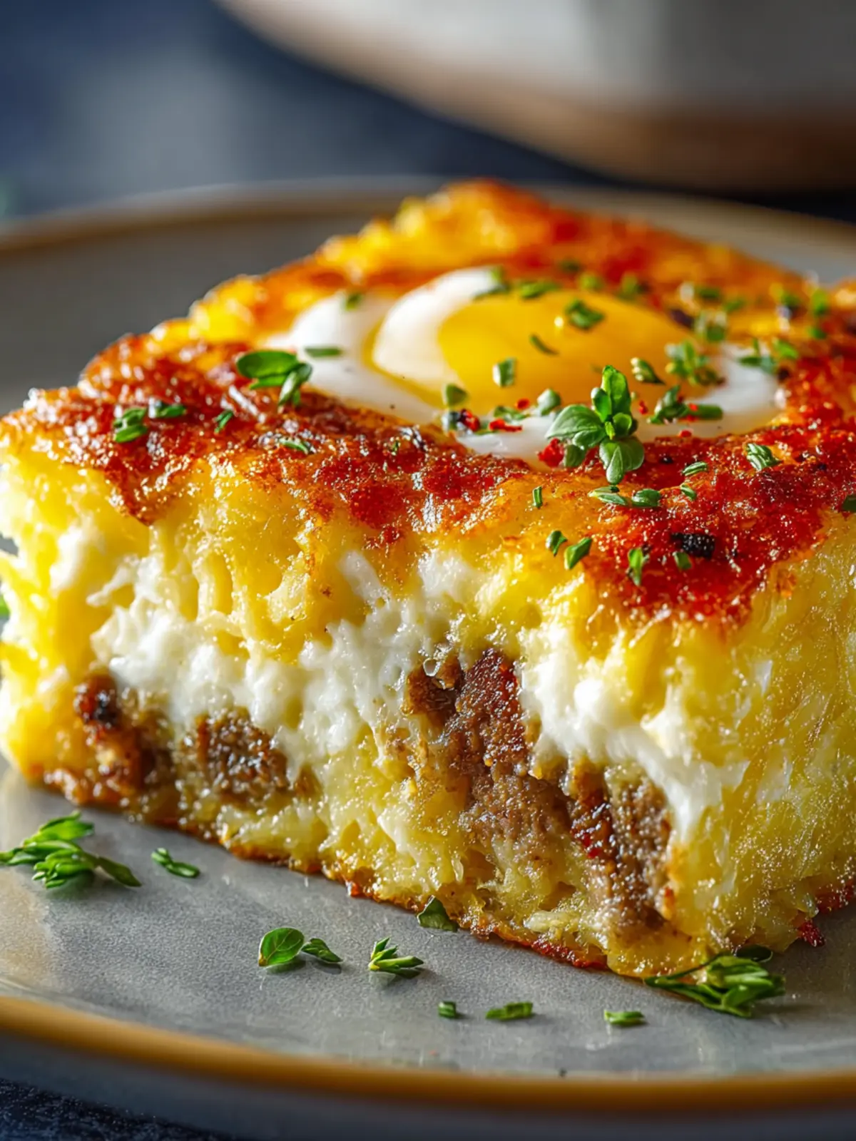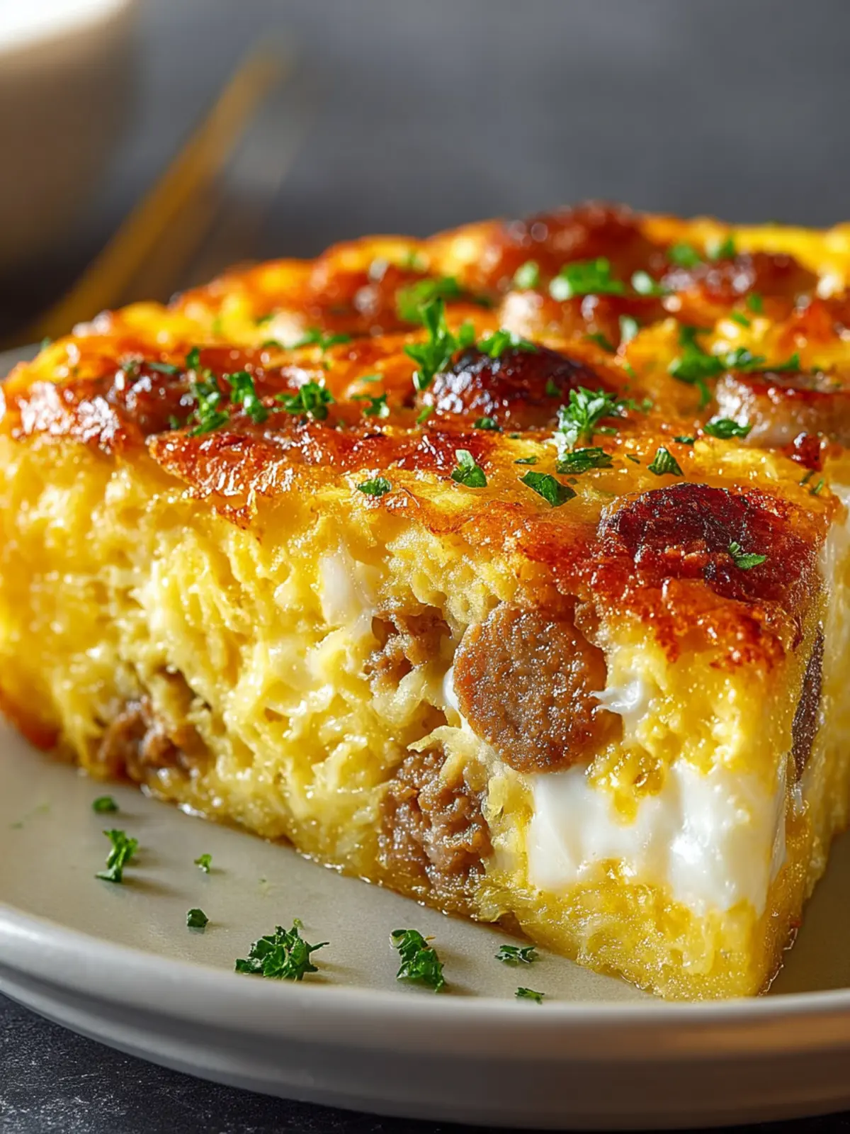 Sausage Egg and Cream Cheese Hashbrown Casserole Bliss